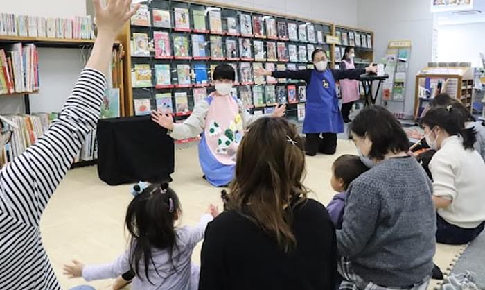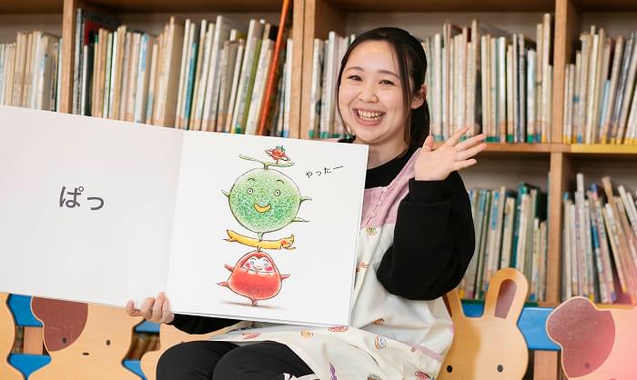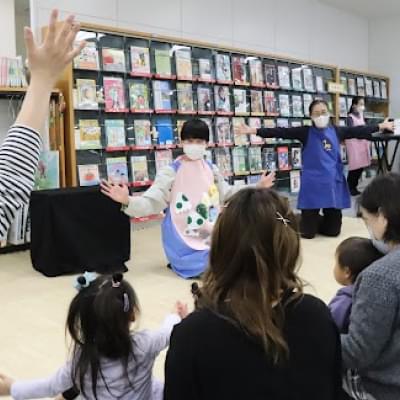 「おやこ図書館」は地域の子どもから保護者の方まで楽しめるイベントです。地域に開かれた場であると同時に、「おはなし会」の実施を通して、保育学科や生活プロデュース学科の学生にとって、子どもや家族と関わりながら学ぶ実践の場にもなっています。
