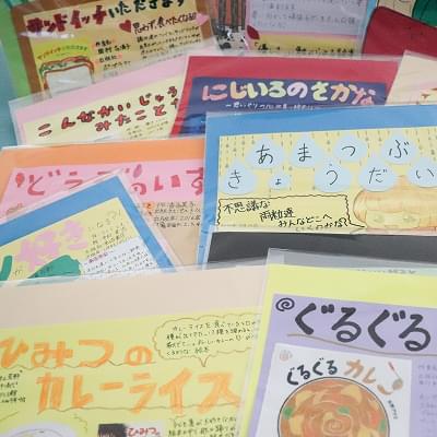 学生が作成した絵本紹介カードを展示。読んだ方からノートに感想が寄せられます。