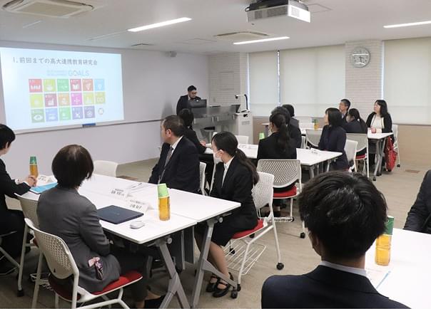 高校および大学の教育の向上に資する活動として、高大連携教育研究会を開催しています。教育手法などの研究発表、事例報告、情報交換を行います。他大学等の外部講師を交えることもあります。